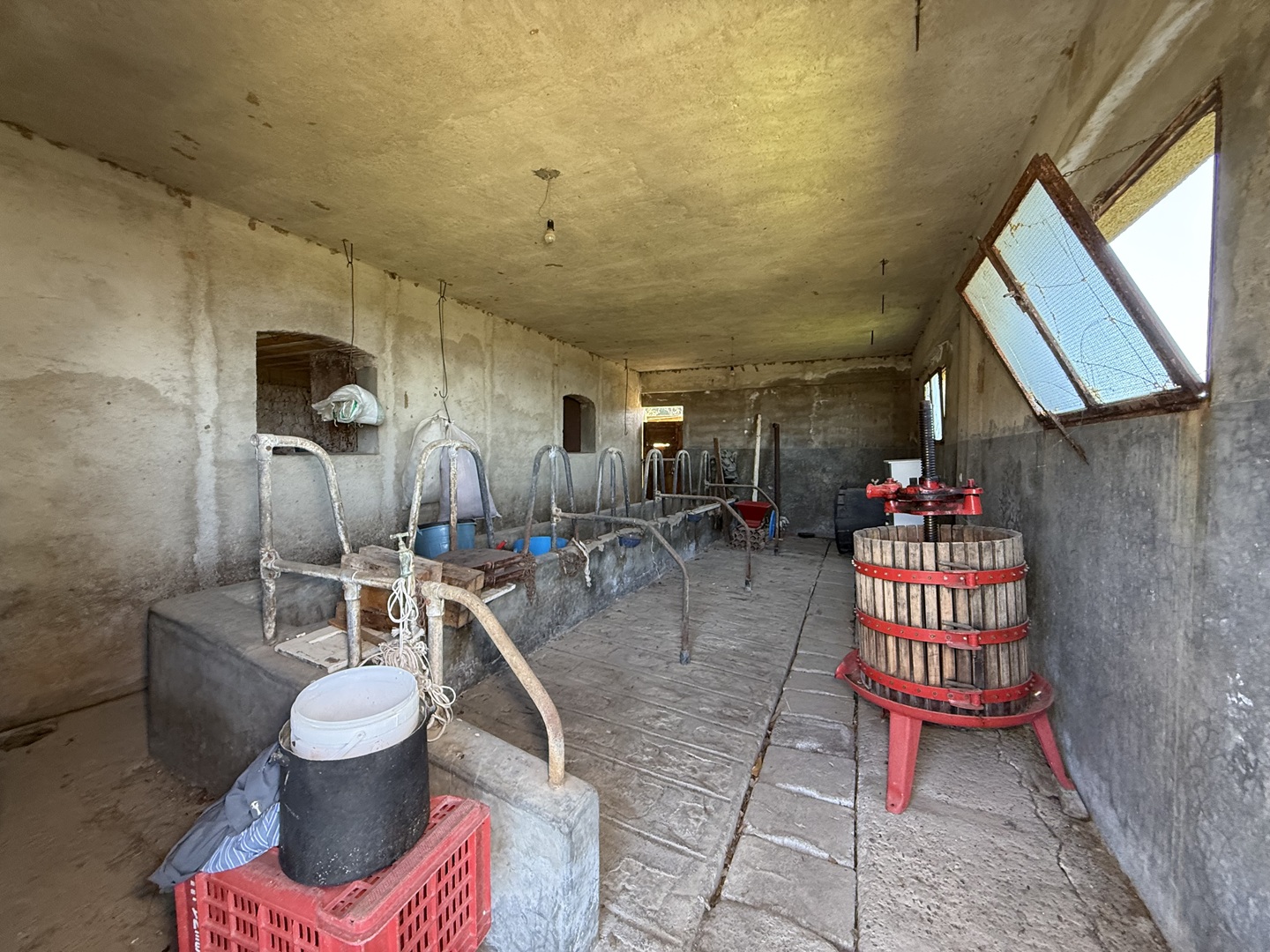 •Primo piano: accessibile tramite scala esterna, è composto da quattro spaziose stanze e un bagno, attualmente accatastati come deposito agricolo.