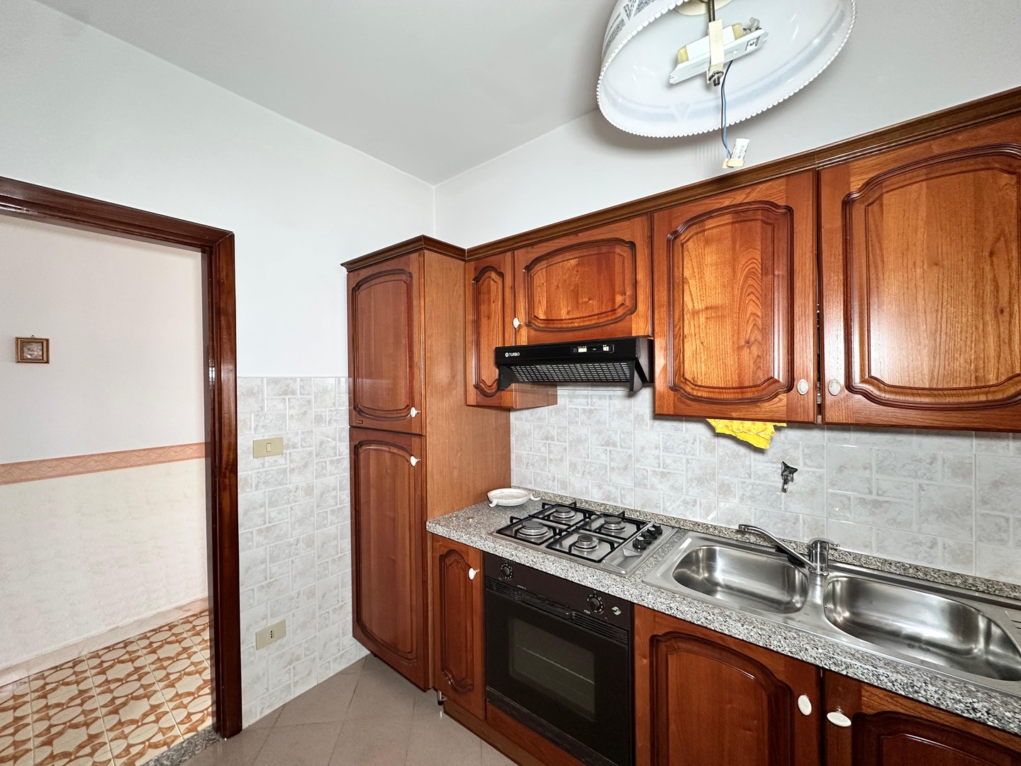 ampio disimpegno, soggiorno con balcone panoramico, cucina abitabile, due camere, di cui una con finestra e una con balcone panoramico, ampia e luminosa camera padronale, bagno con doccia.